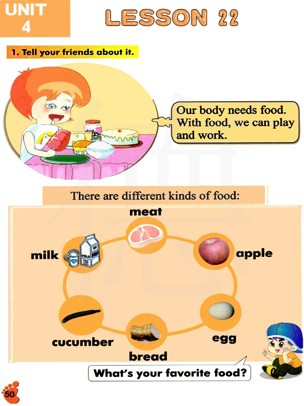 我们的身体需要食物。有了食物,我们可以玩耍和工作。