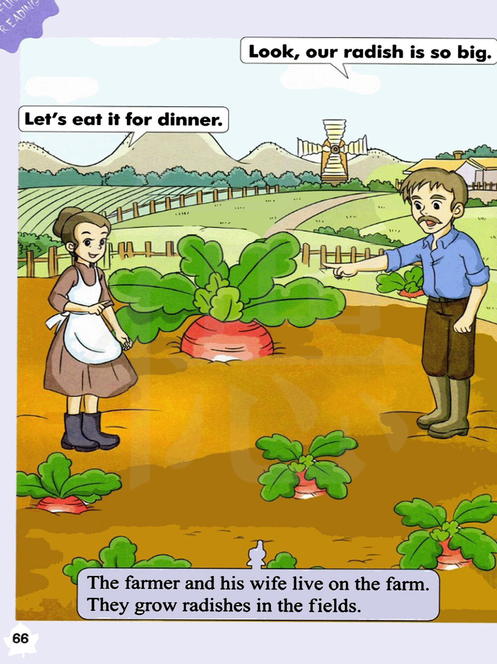 农夫和他的妻子生活在一个农场里。他们在地里种水萝卜。