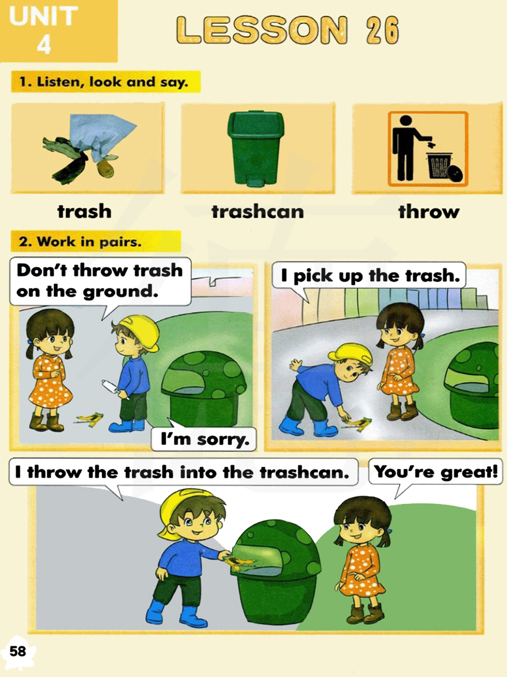 我捡起垃圾。