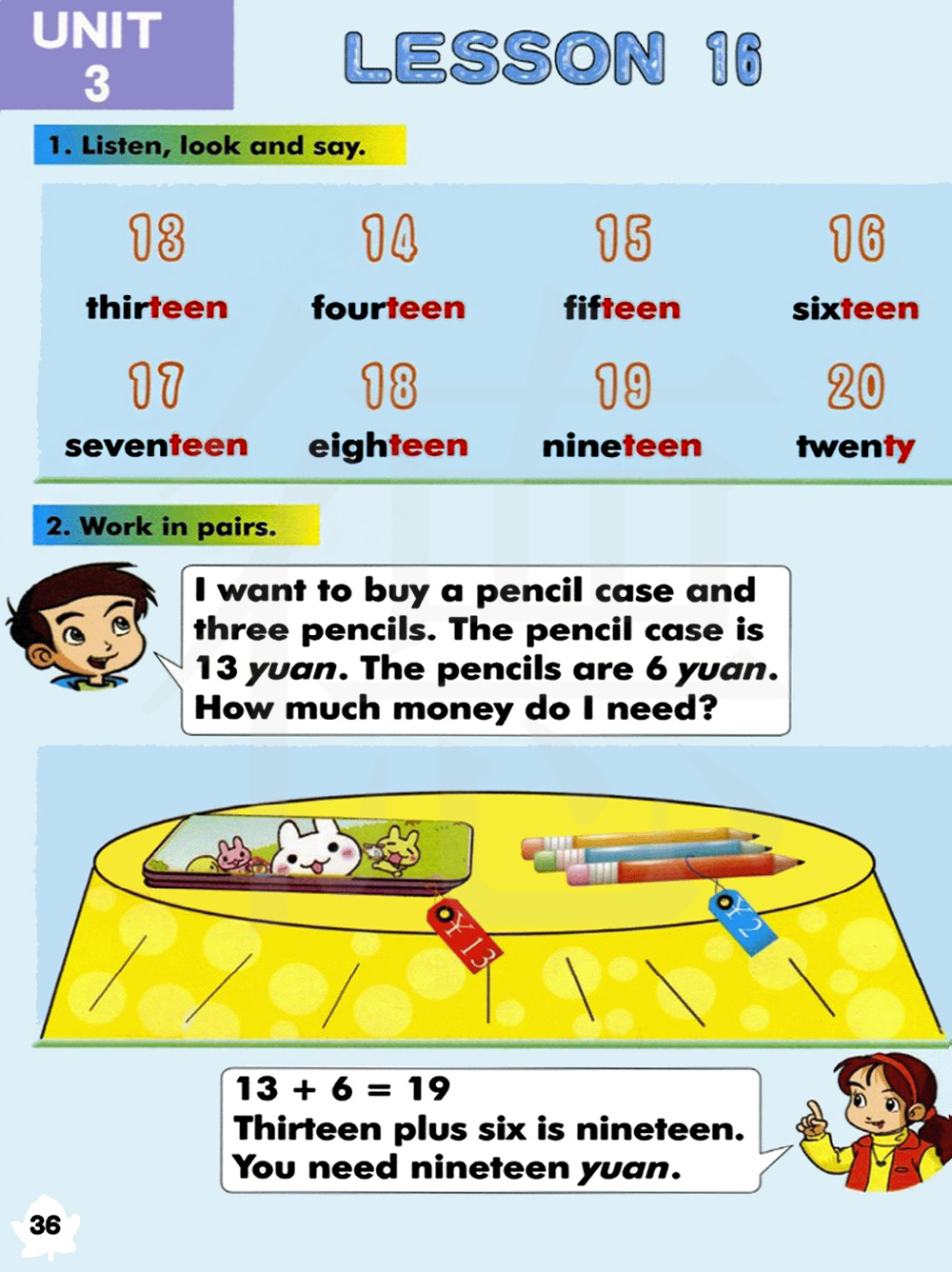 我想买一个铅笔盒和三只铅笔。铅笔盒是十三元。铅笔是六元。我需要多少钱。