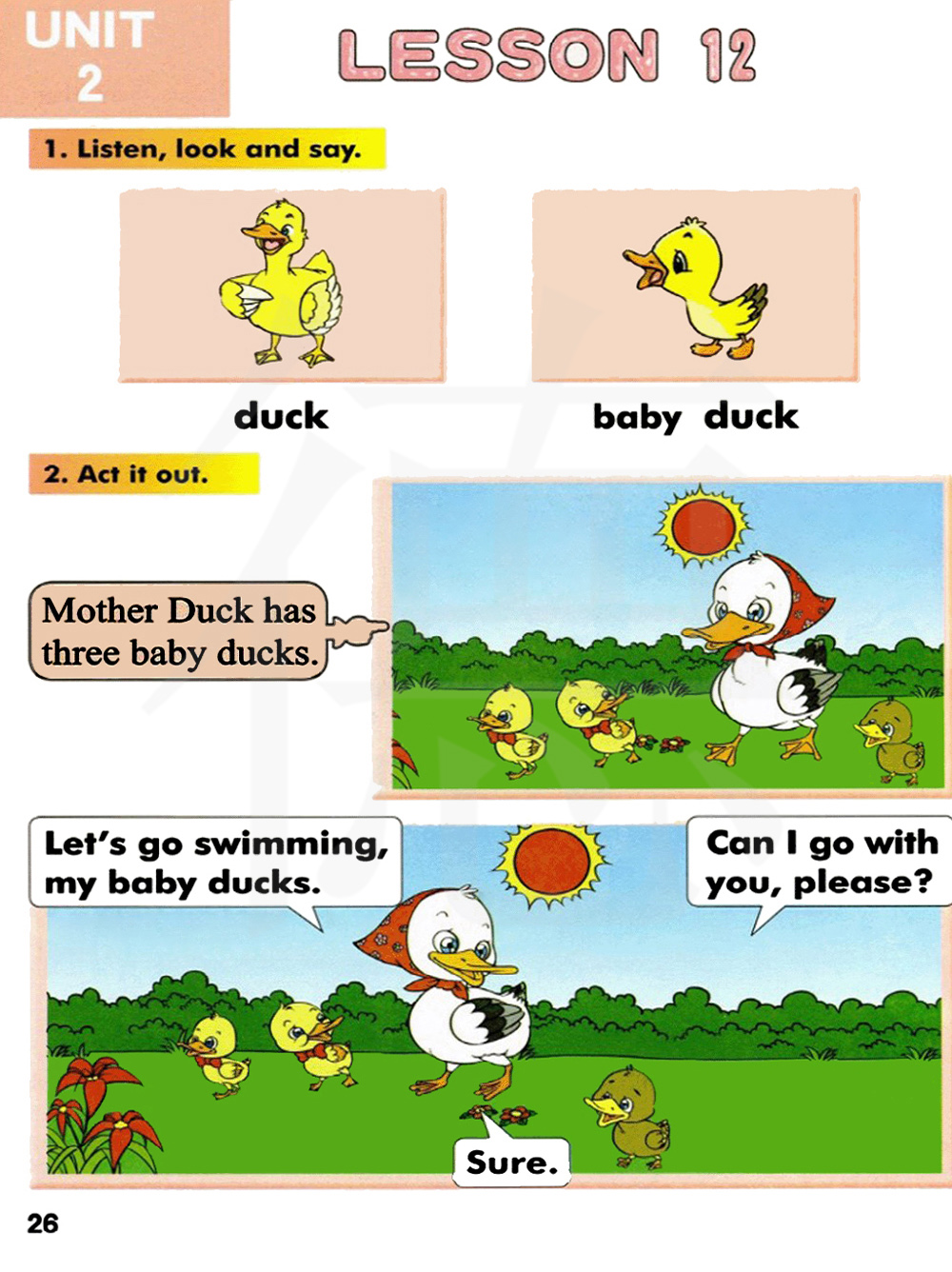 鸭妈妈有三个鸭宝宝。
