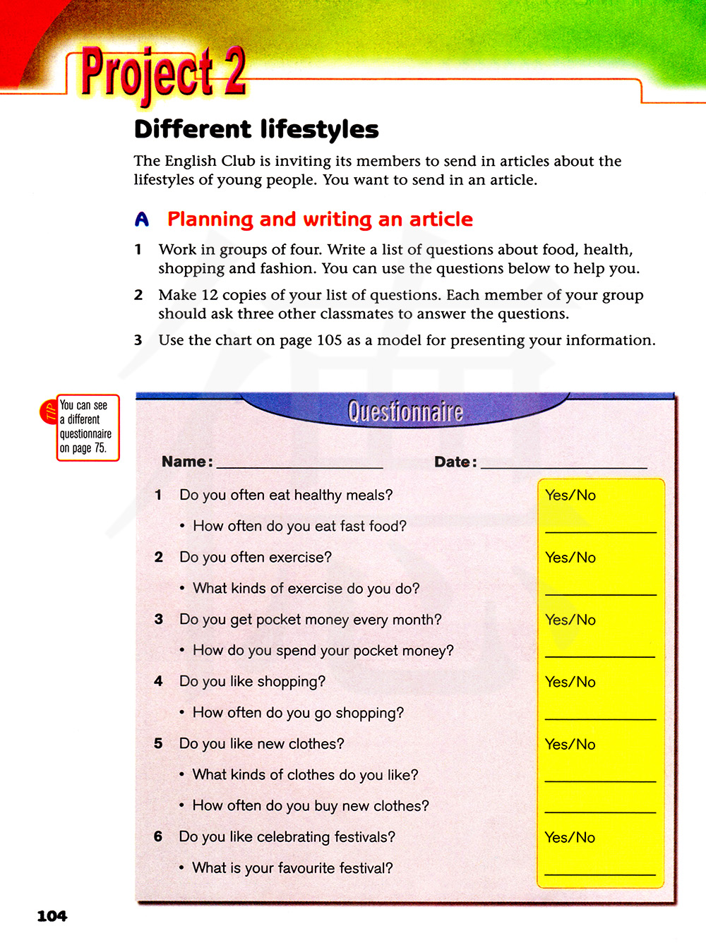 小贴士 你可以在75页看到一份不同的调查问卷。
