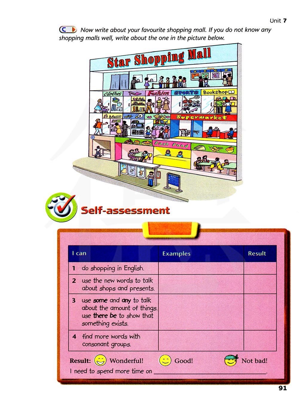 现在写一写你最喜欢的大型购物中心。如果你对任何大型购物中心都不是很了解。就写一写下面图片上的这个。