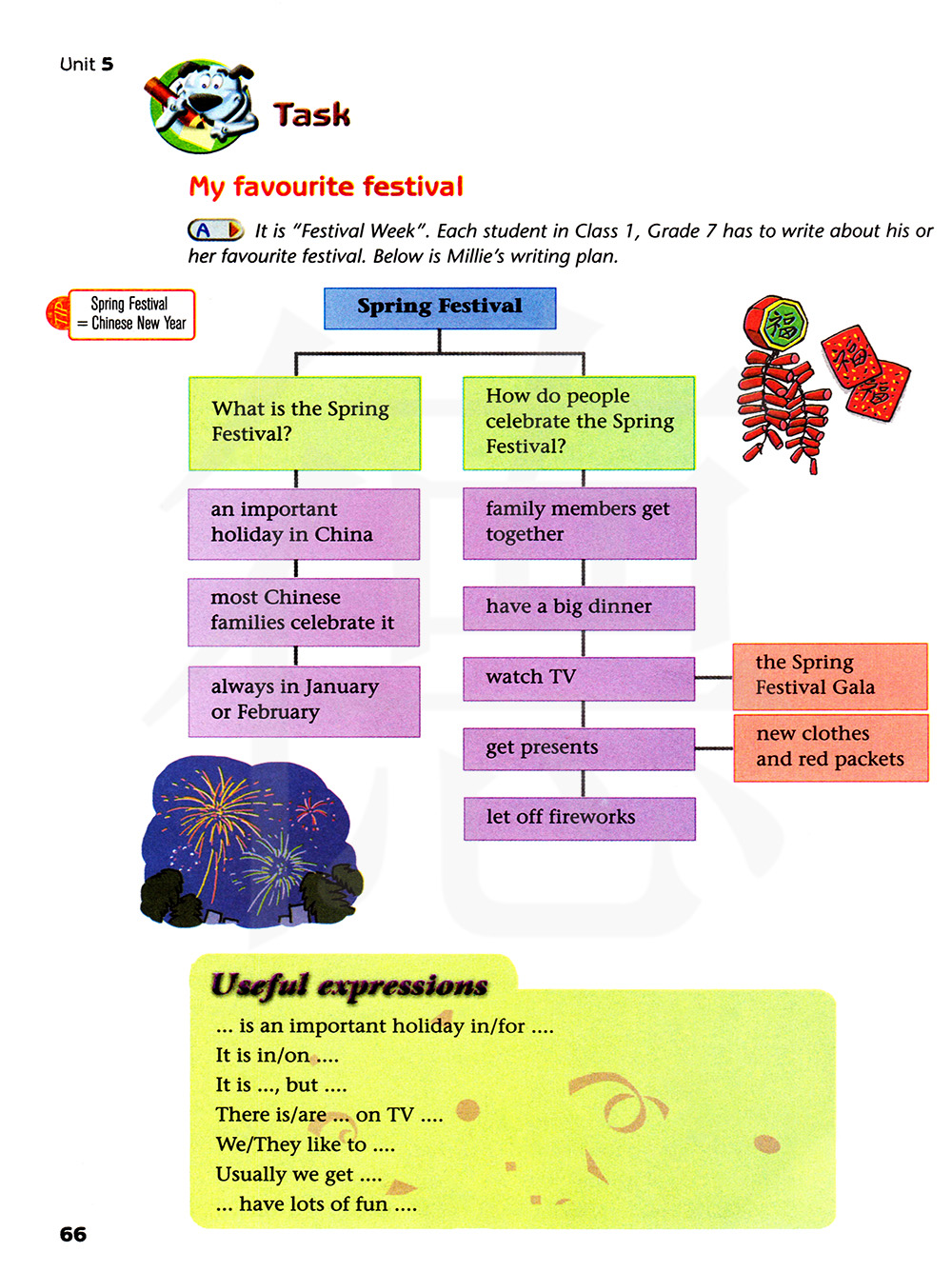 在“节日周”七年级一班的每个学生都要写他/她最喜欢的节日。下面是米莉的写作提纲。