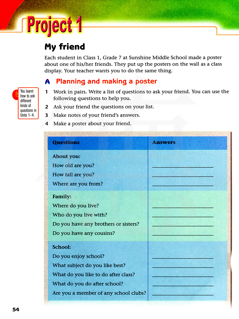 小贴士 在1—4单元你学习了如何问不同种类的问题。