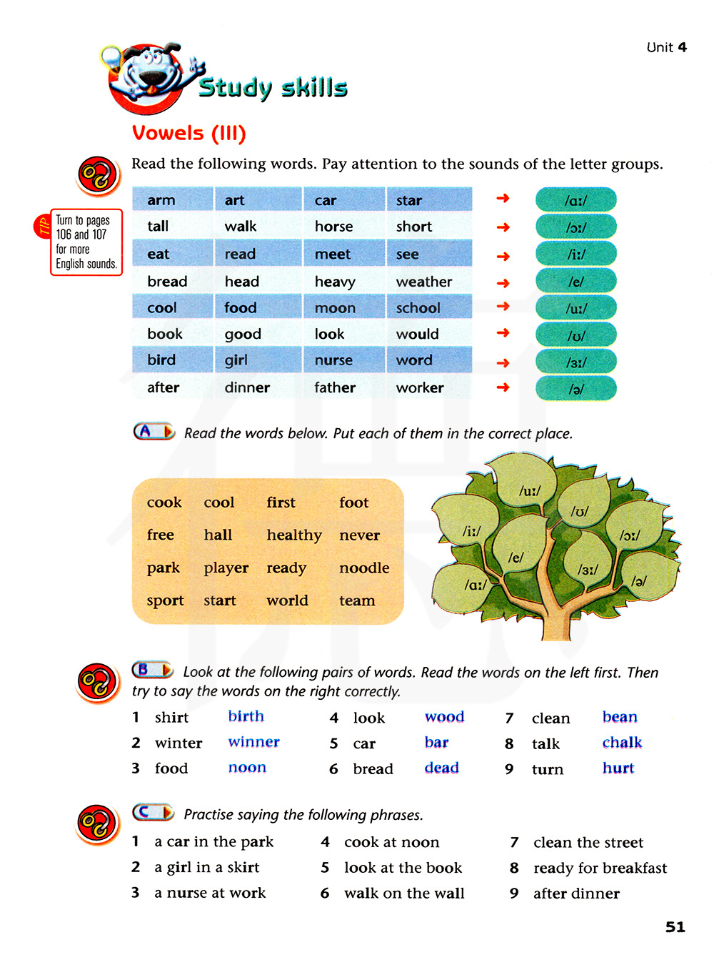 看下面成对的单词。先读左边的单词。然后试着正确的说出右边的单词。