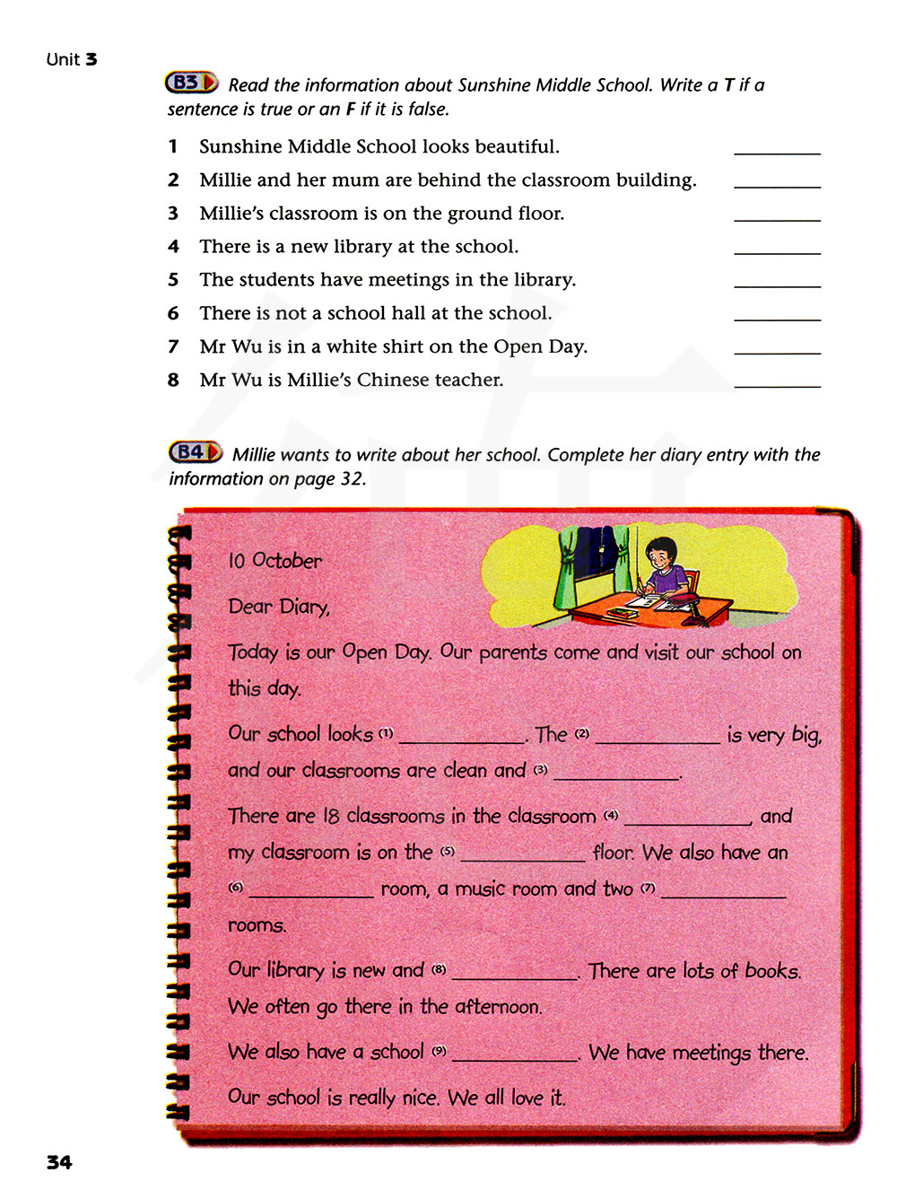 米莉想写一写她的学校。用32页上的信息完成她的日记。