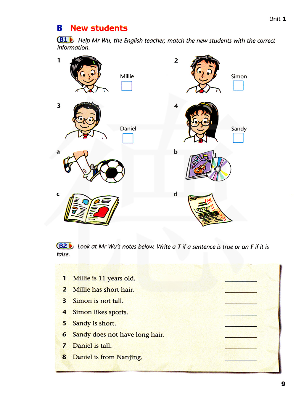 帮助英语老师吴先生,把新同学喝正确的信息搭配起来。