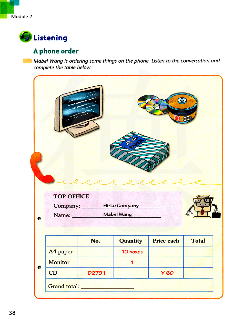 王.梅布尔正在打电话订购一些东西。听一听对话,并完成一下表格。