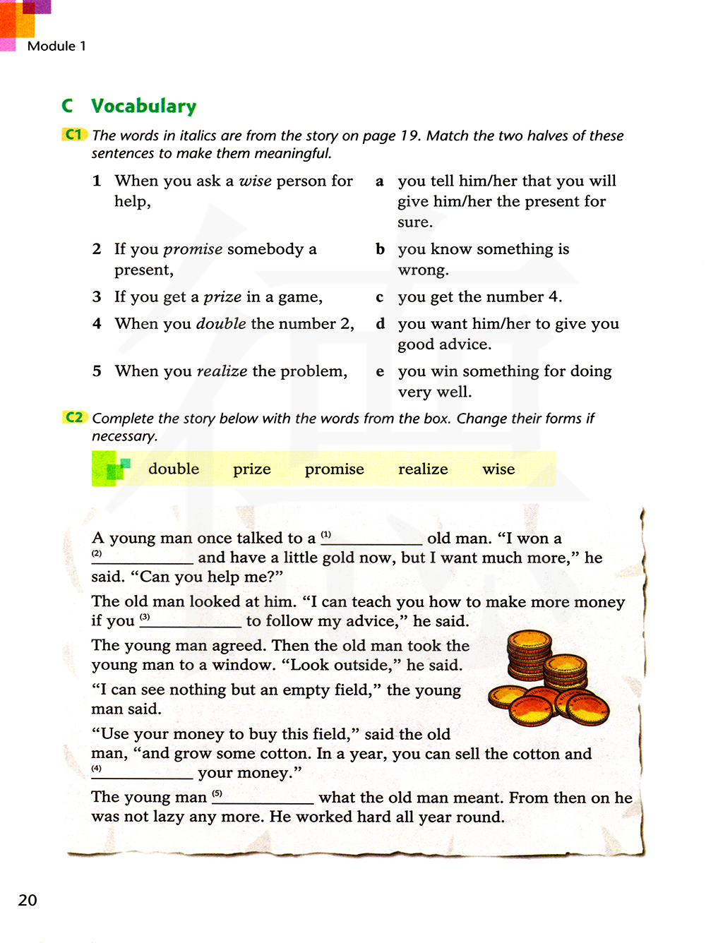 写题的单词来自第19页的故事。配对这些句子的两部分,使其有意义。