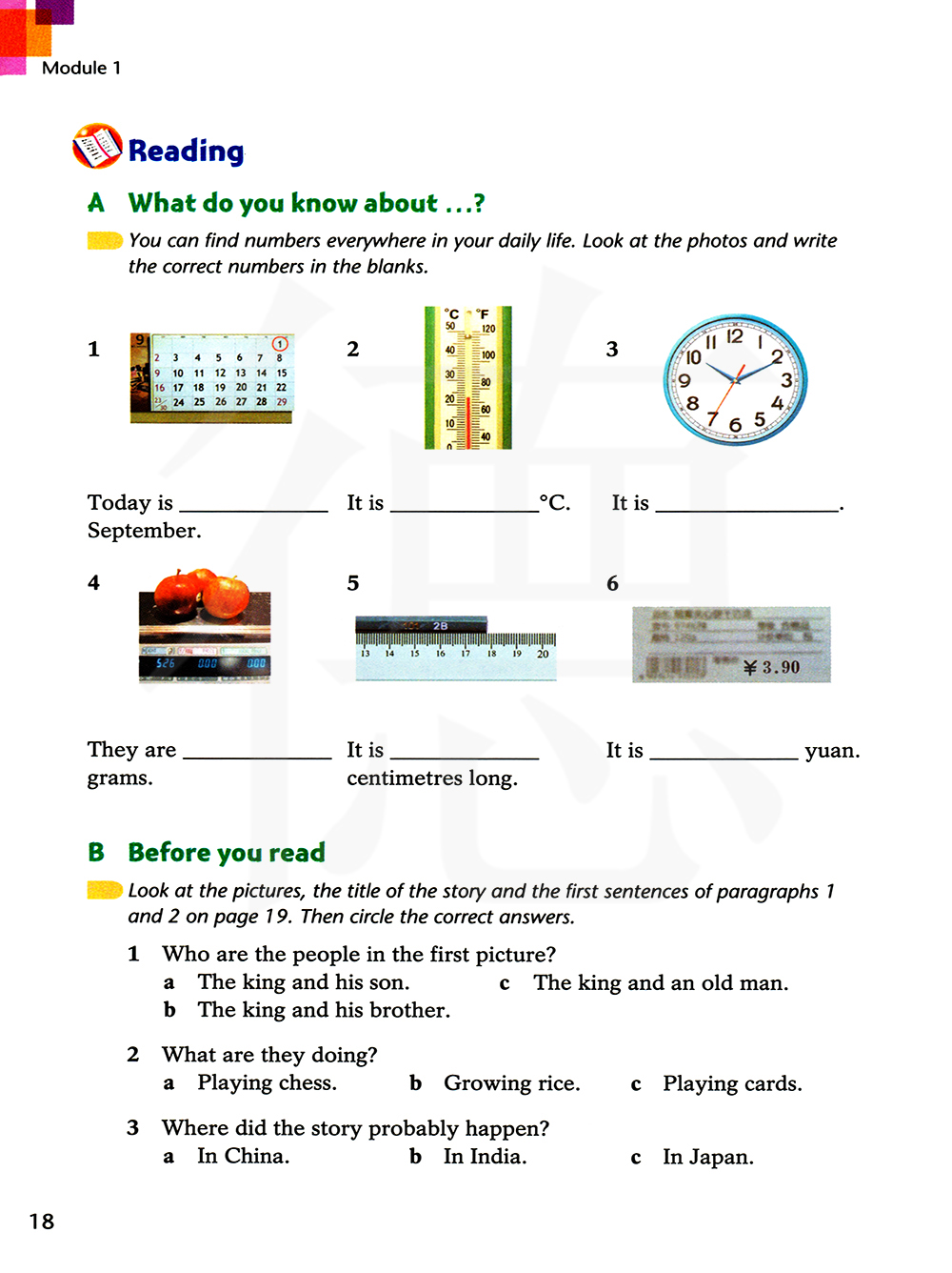 你可以在日常生活中的每个地方都能发现数字。看一看照片,并在空白处写上正确的数字。