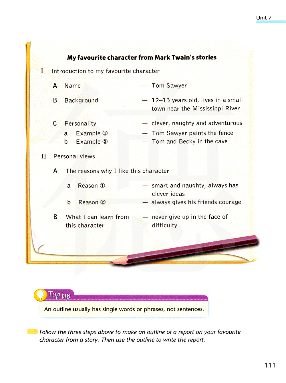 仿照以上地三个步骤,为你关于故事中你最喜欢地角色报告做一个提纲,然后用这个提纲来写一篇报告。