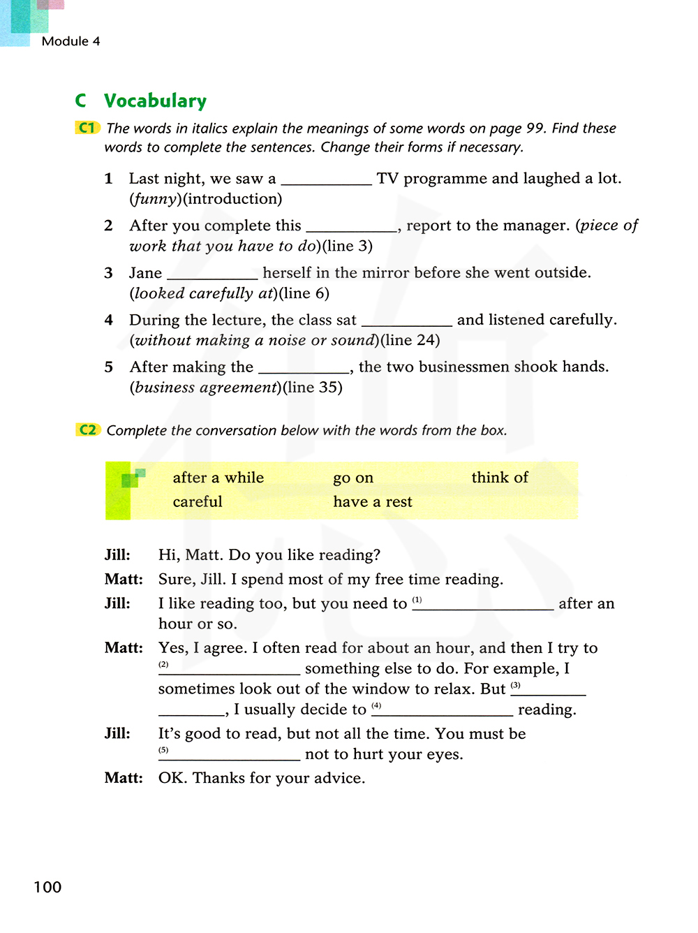 C1 斜体单词解释了99页的一些单词的意思,找出这些单词,并完成句子,如由必要改变他们的形式。