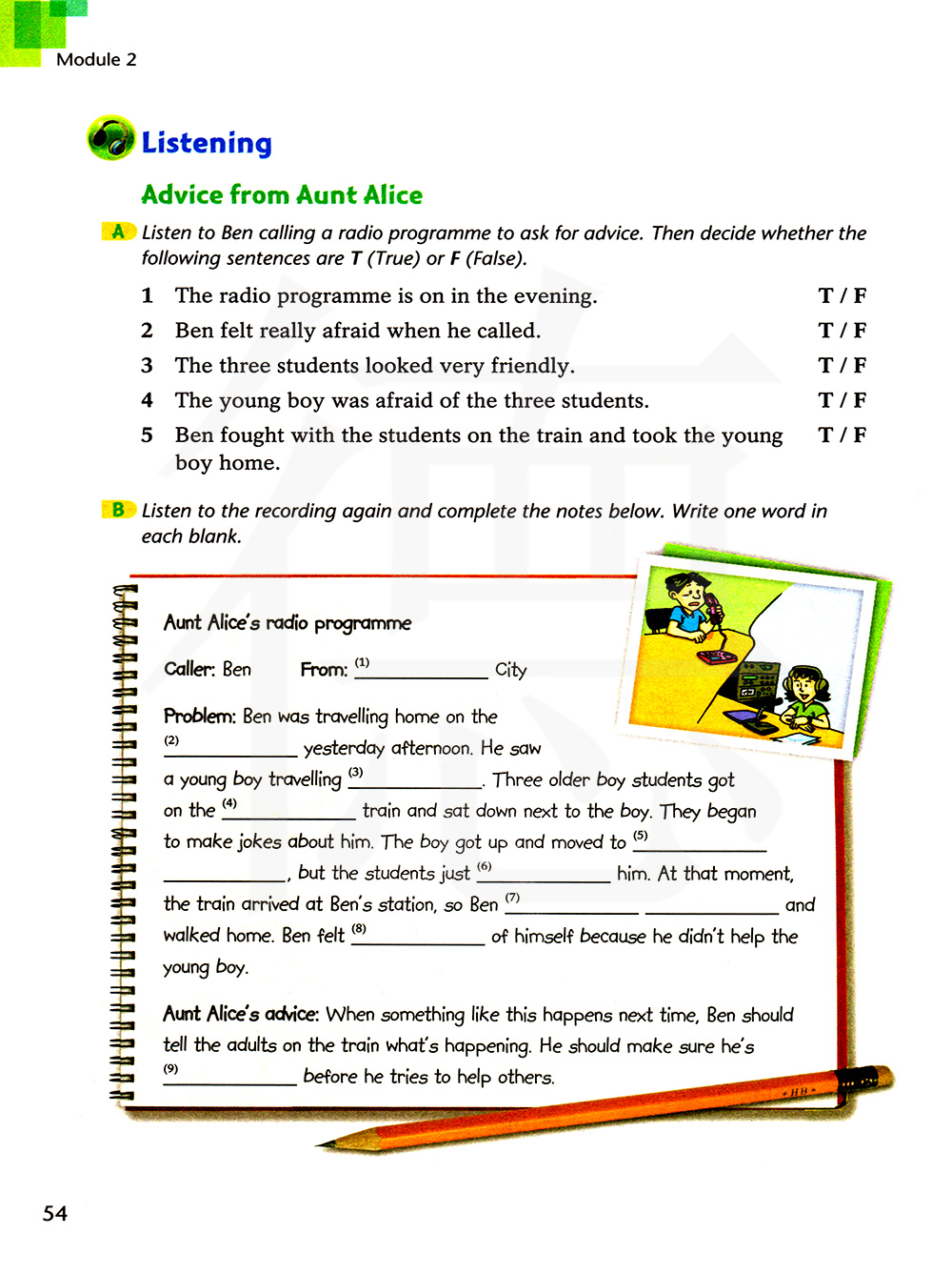 A 听关于本打电话写一个电台节目以寻求建议得录音,然后判断下列句子得正误。
