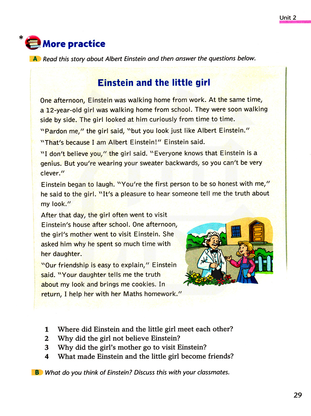 A 读这则关于阿尔伯特爱因斯坦的故事,然后回答下列问题。