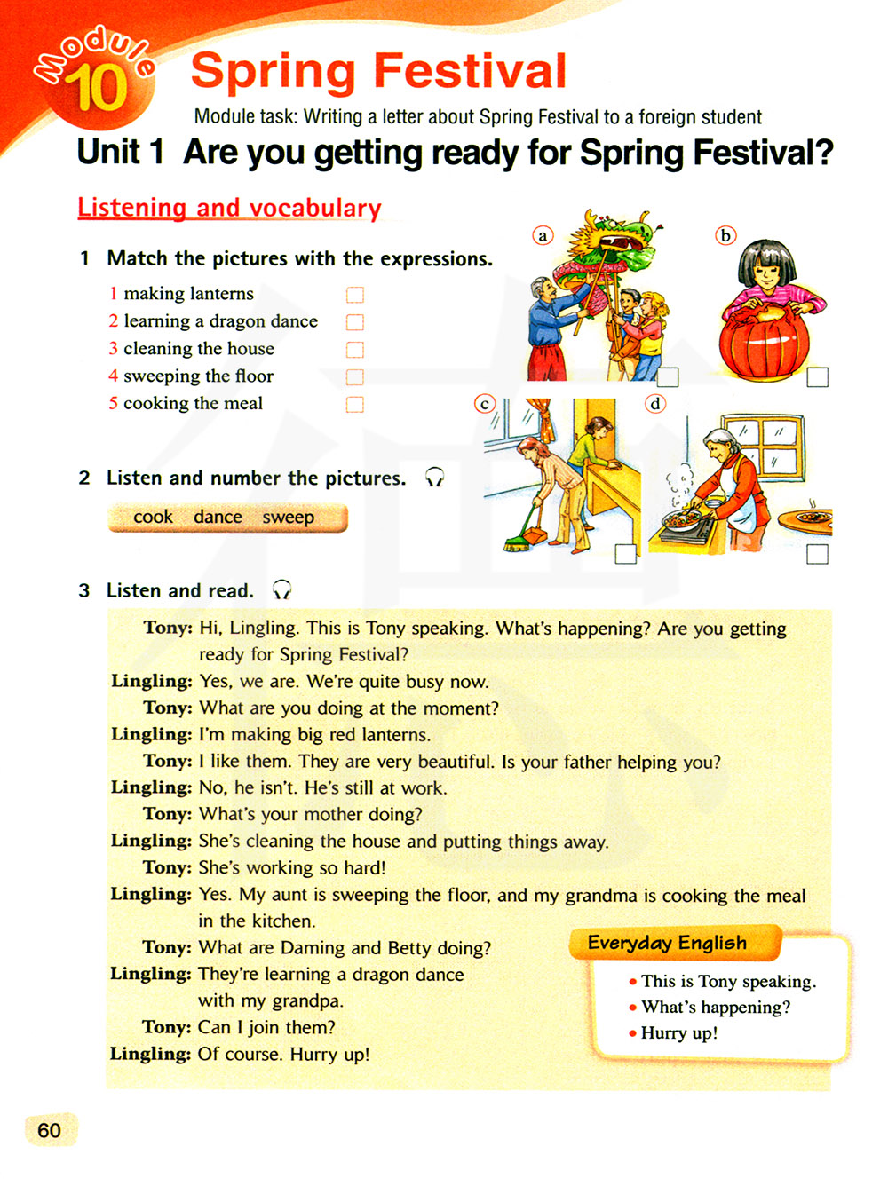 Eg:She got up early and cleaned the flat. 她早早就起了床,把公寓打扫干净