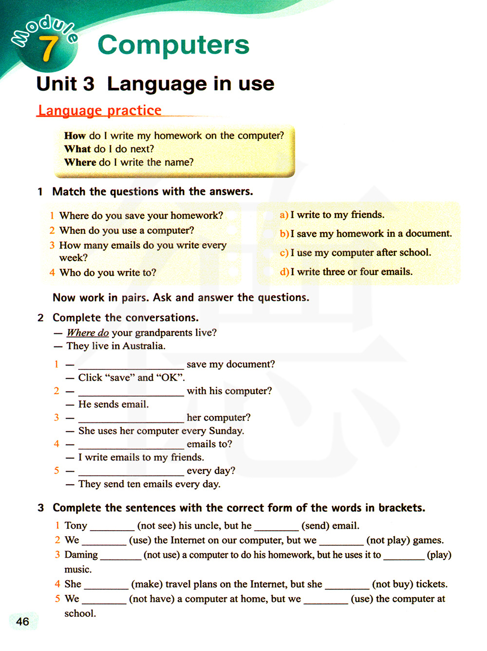 你把功课保存在哪里呢?你什么时候会使用电脑?