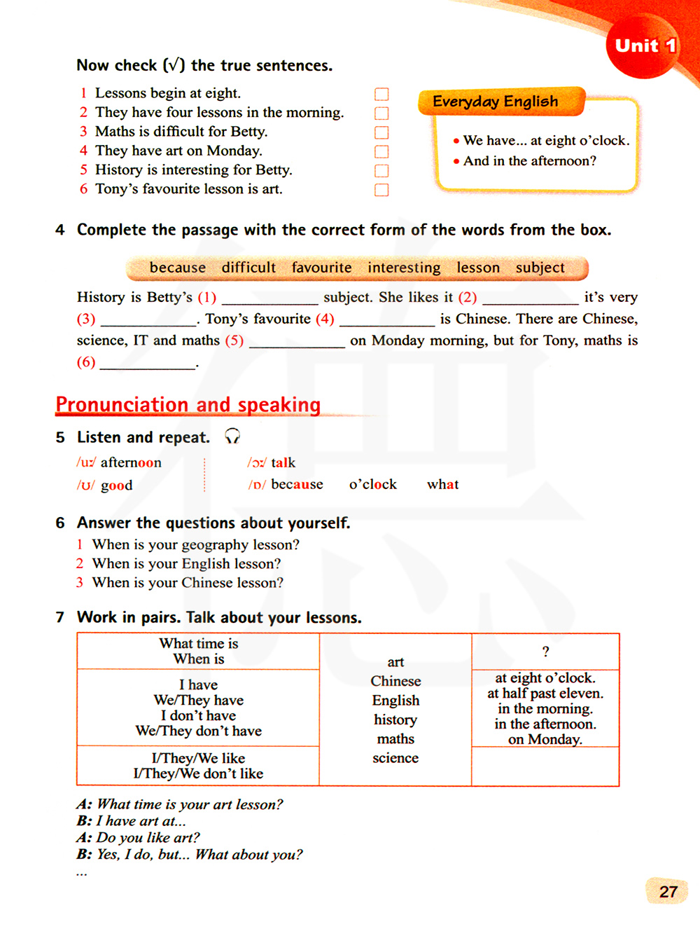 对贝蒂来说,历史课很有趣。托尼最喜欢的科目是美术。