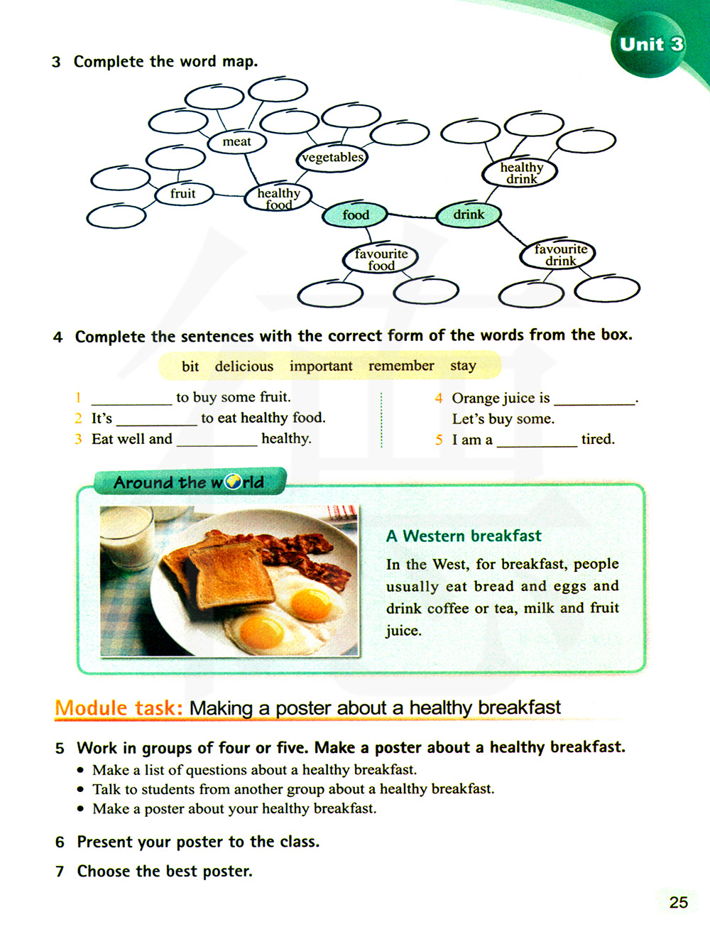 四人或五人一组,做一张关于一份健康早餐的海报。