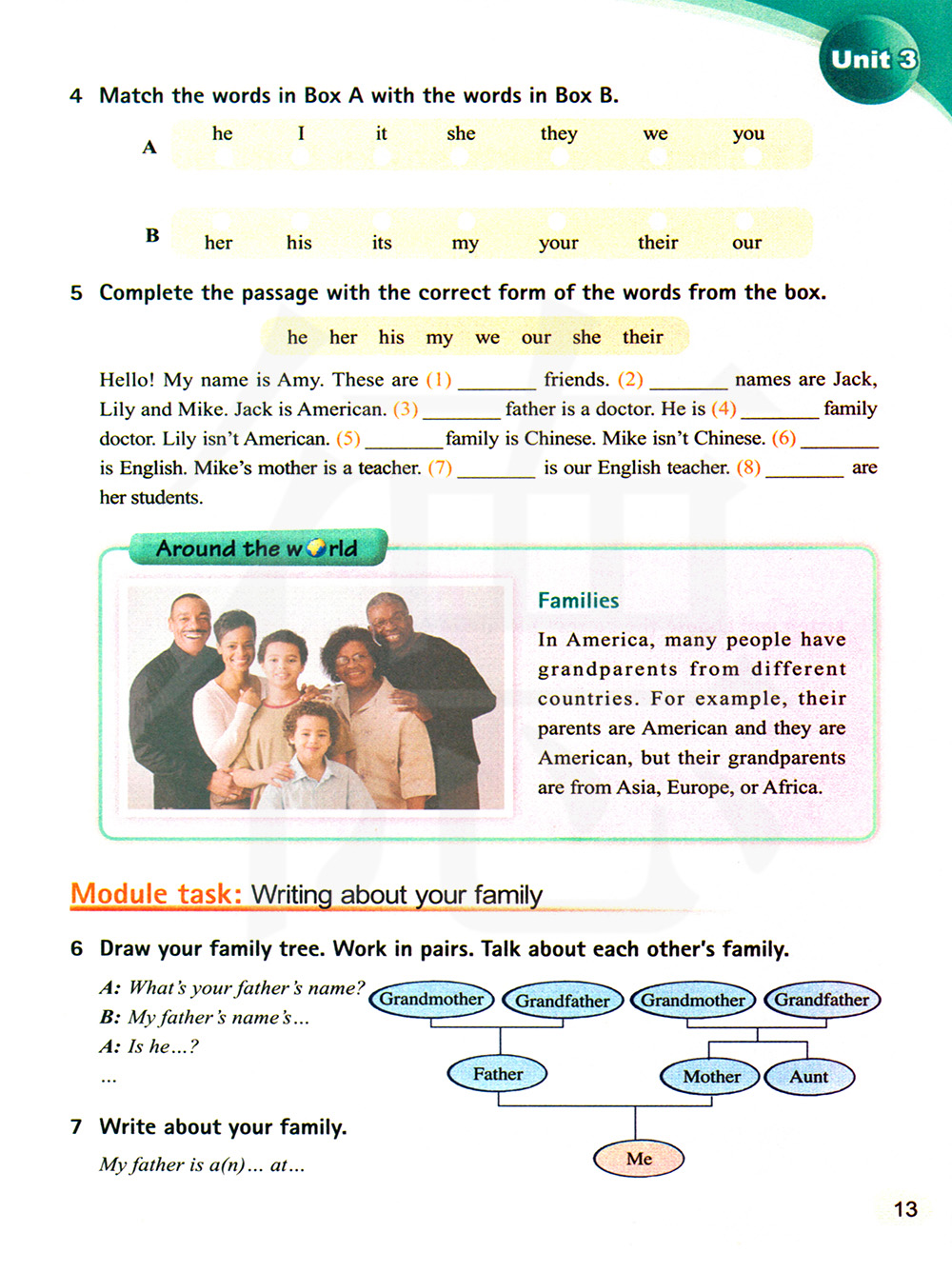 画出你的家谱。结对练习。谈谈彼此的家庭。