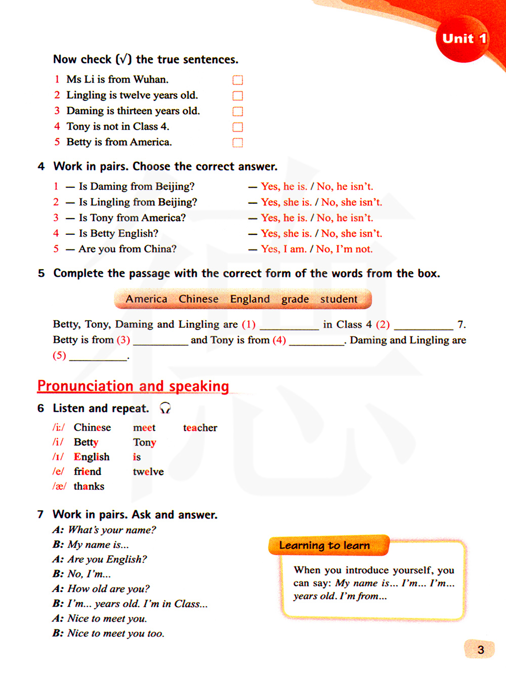 托尼来自美国吗?是的,他是。不,他不是。贝蒂是英国人吗?是的,他是。不,他不是。你来自中国吗?是的,他是。不,他不是。