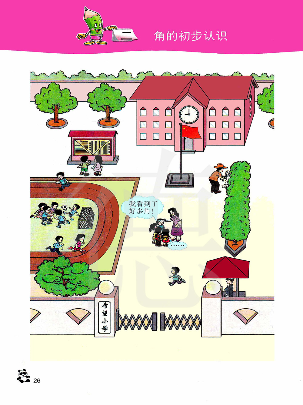 3、目标;结合生活情景认识角,使学生感受角与生活的密切联系,并在探索角的过程中获得成功的体验。