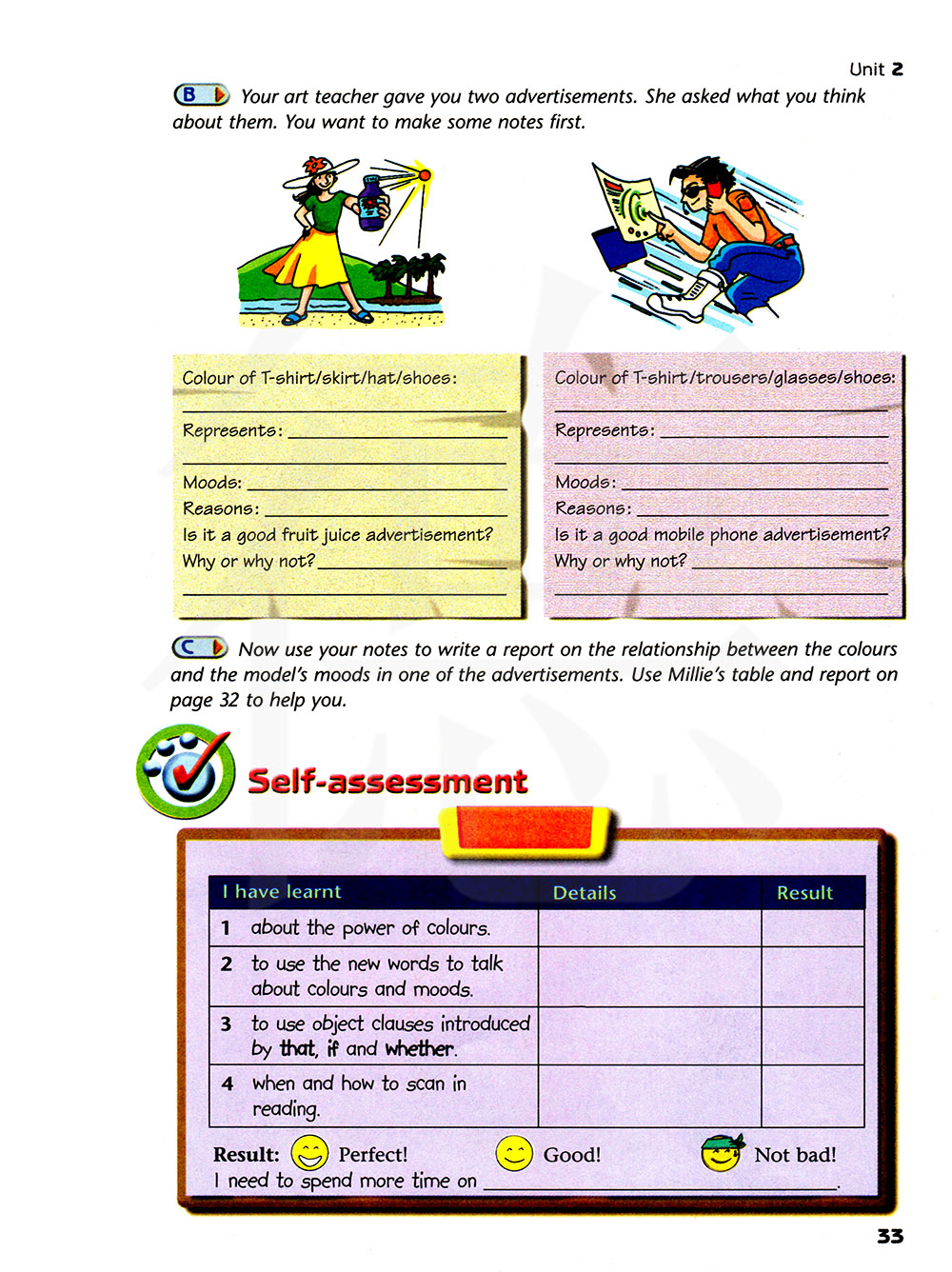 你的美术老师给了你两则广告,她问你觉得它们怎么样,你想先做些笔记。