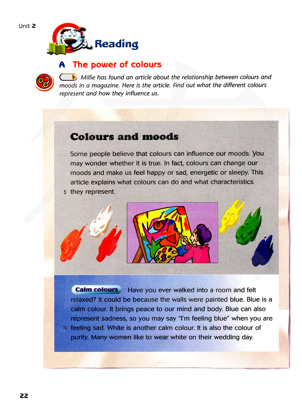 米莉在一本杂志上发现了一篇有关颜色和心情之间的关系的文章,这就是那篇文章,找出不同的颜色代表什么,以及它们是如何影响我们的。