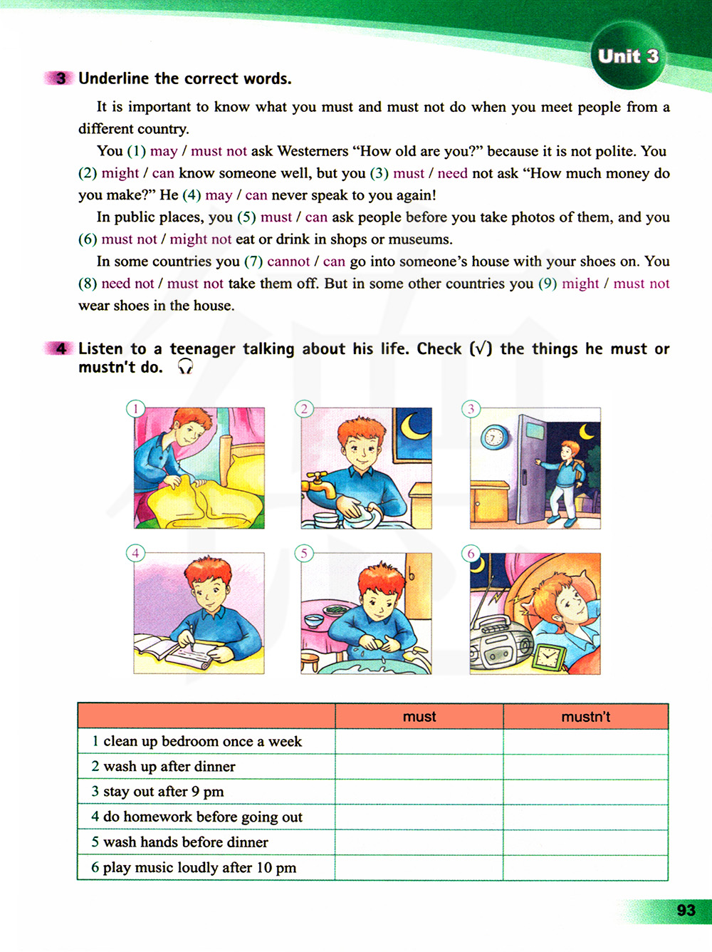 听一位青少年的生活,在他必须做或者不能做的事情上打勾
