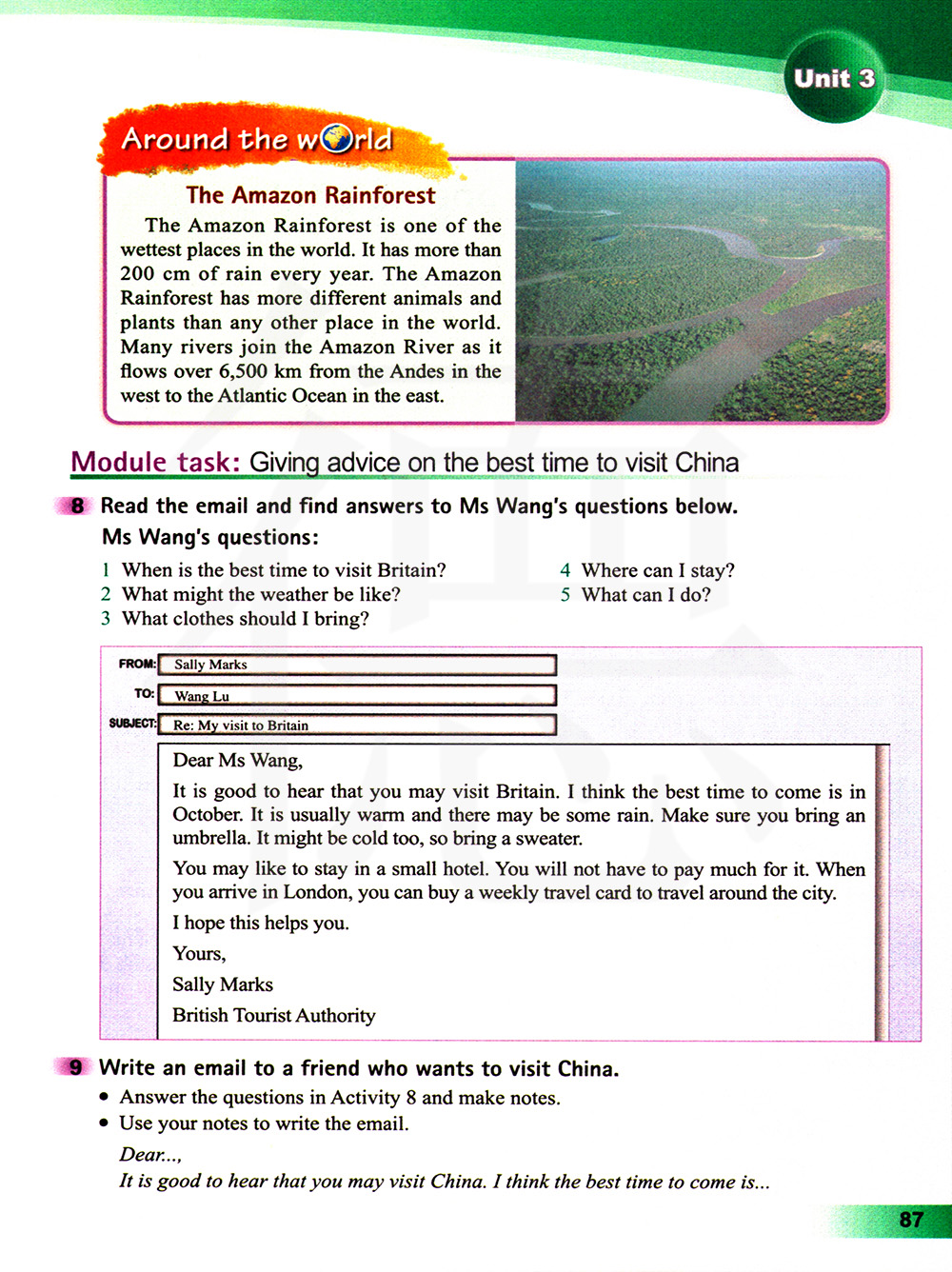 回答活动8中的问题并做笔记 使用你的笔记来写一封电子邮件