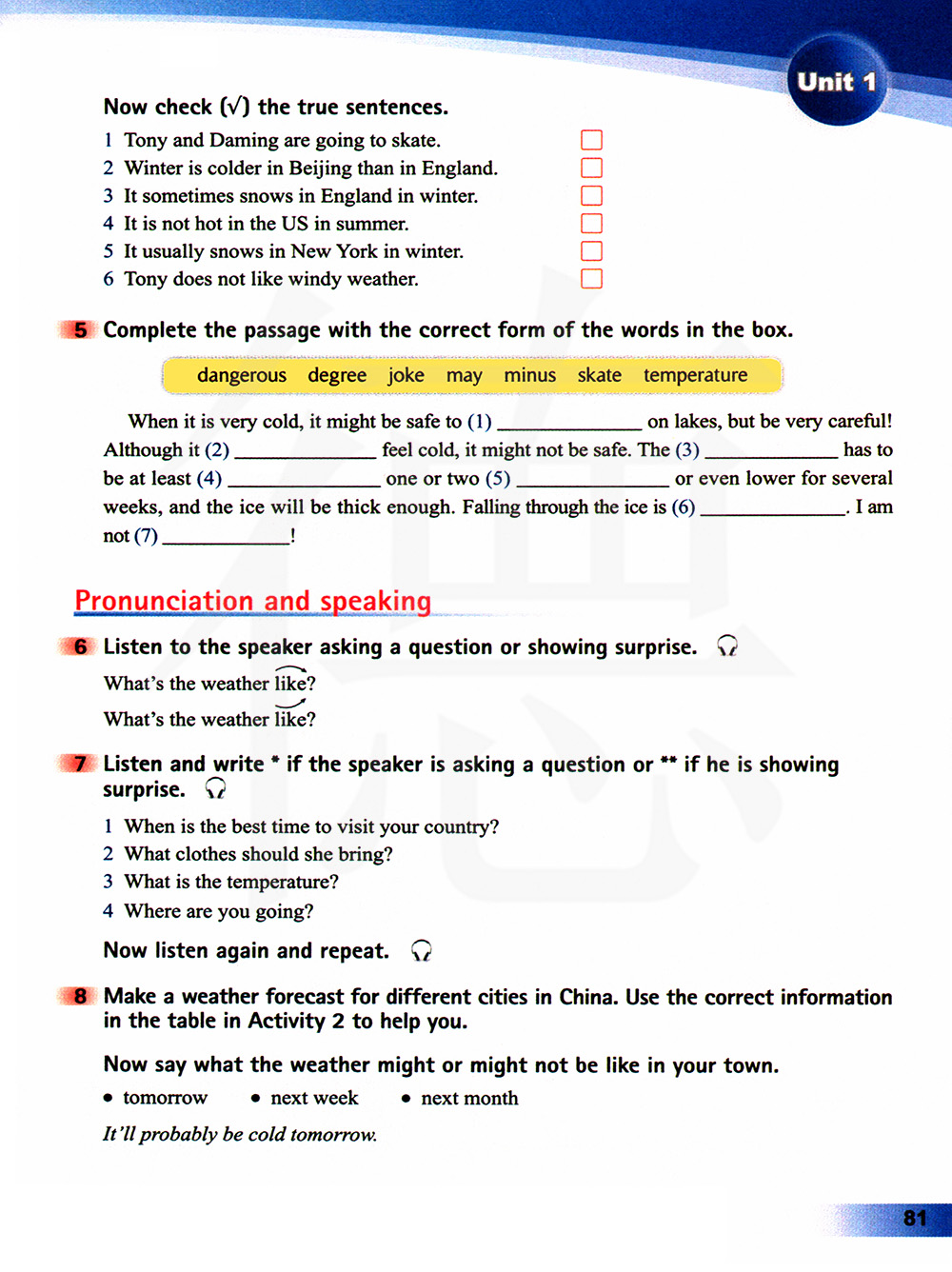 1.托尼和大明要去溜冰 2.北京的冬天比英国冷