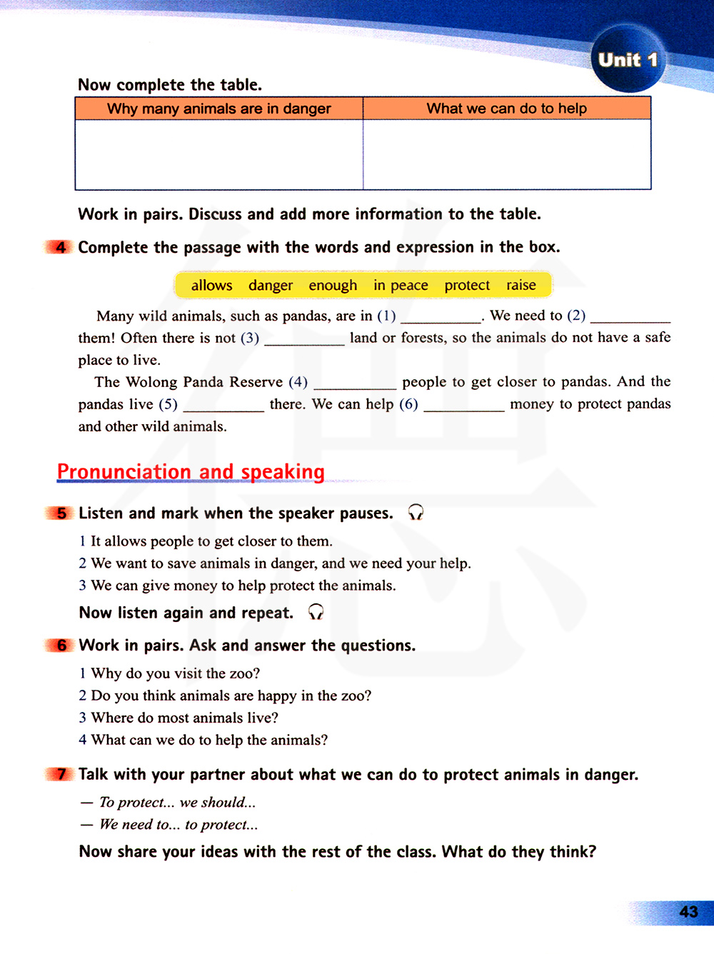 和你的搭档谈论有关我们可以做什么来保护濒危动物的问题