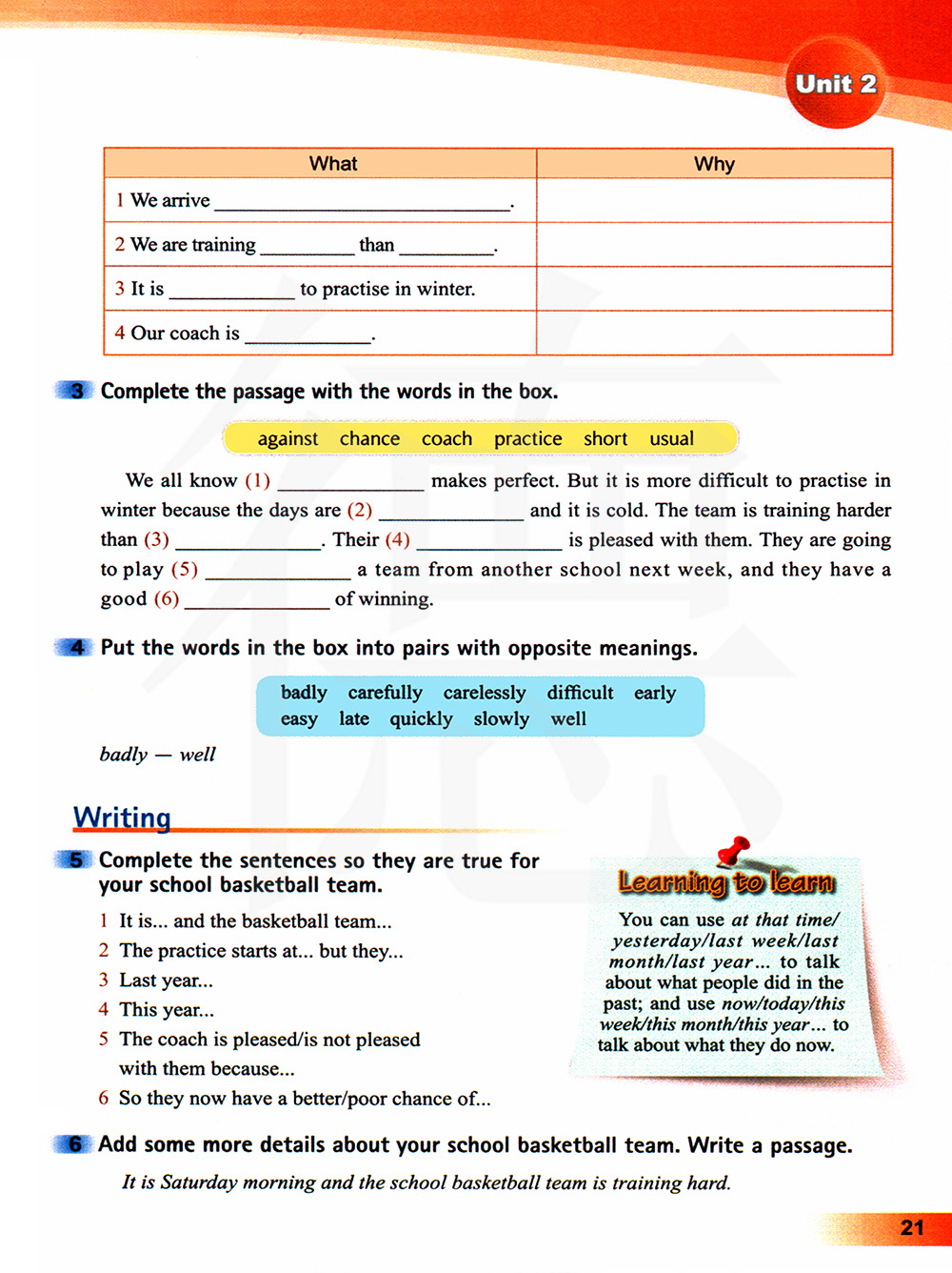 学会英语 你可以使用at that time/yearesterday/last week/last month/last year……来谈论人们过去所做的事情,并且使用now/today/this week/this month/this year……来谈论他们现在做的事情