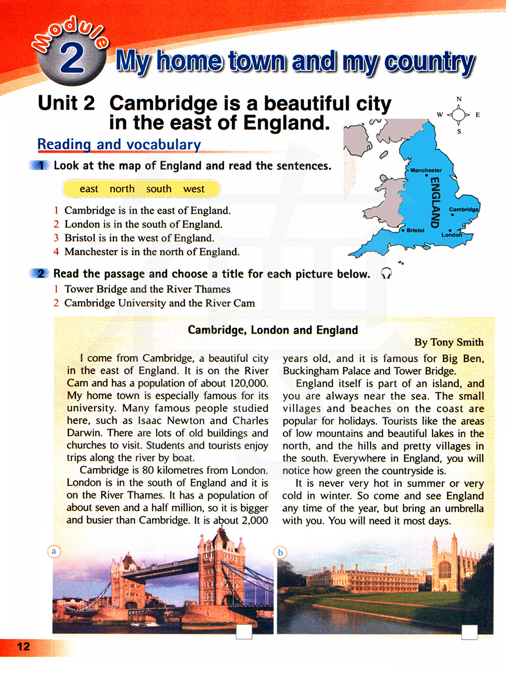 第二单元 剑桥是一座位于英格兰东部的美丽城市 听力和词汇