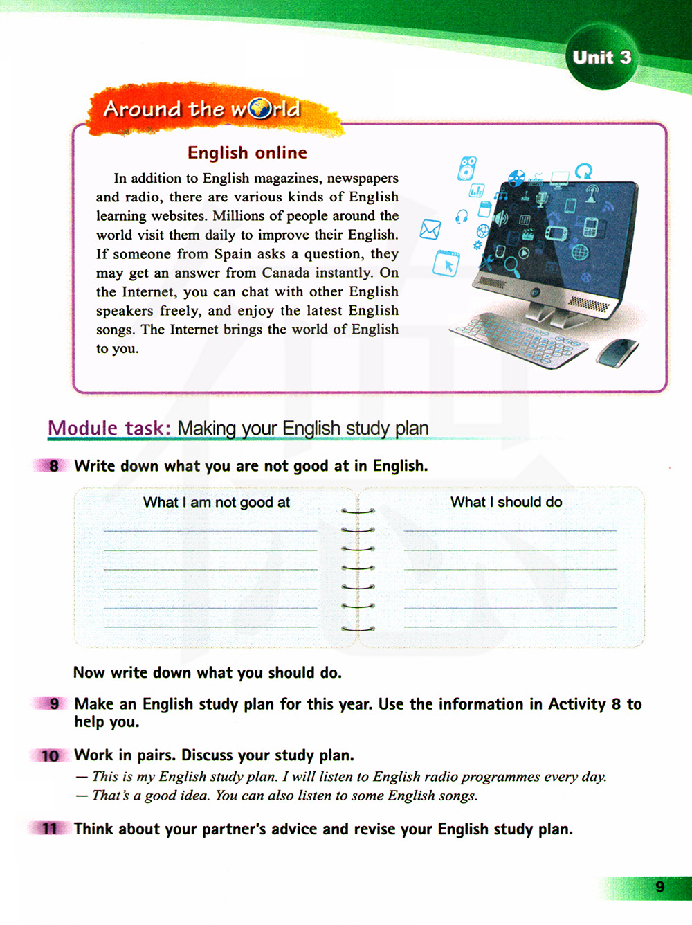 为今年制定一个英语学习计划。使用活动8中的信息来帮助你