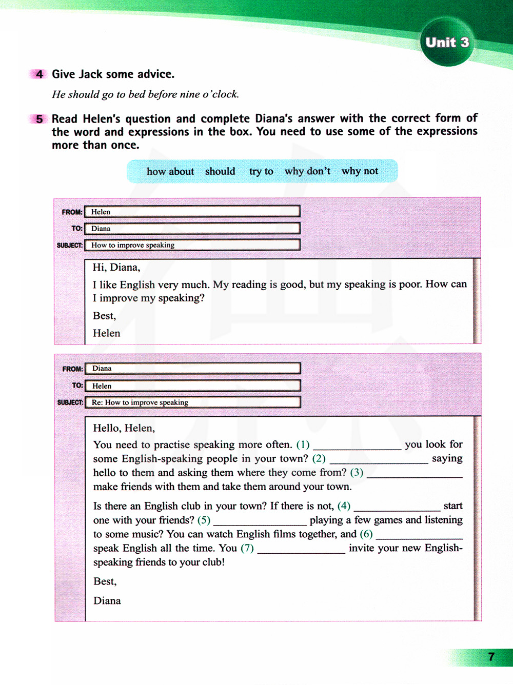 读一读海伦的问题并用方框里的单词和短语的正确形式来完成戴安娜的回答,你需要多次使用一些表达