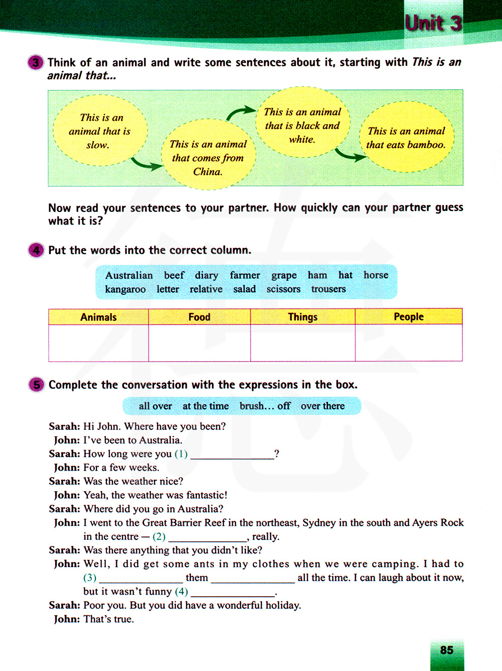 现在把你的句子读给你的同伴听。你的同伴能多快猜出来这是什么动物?