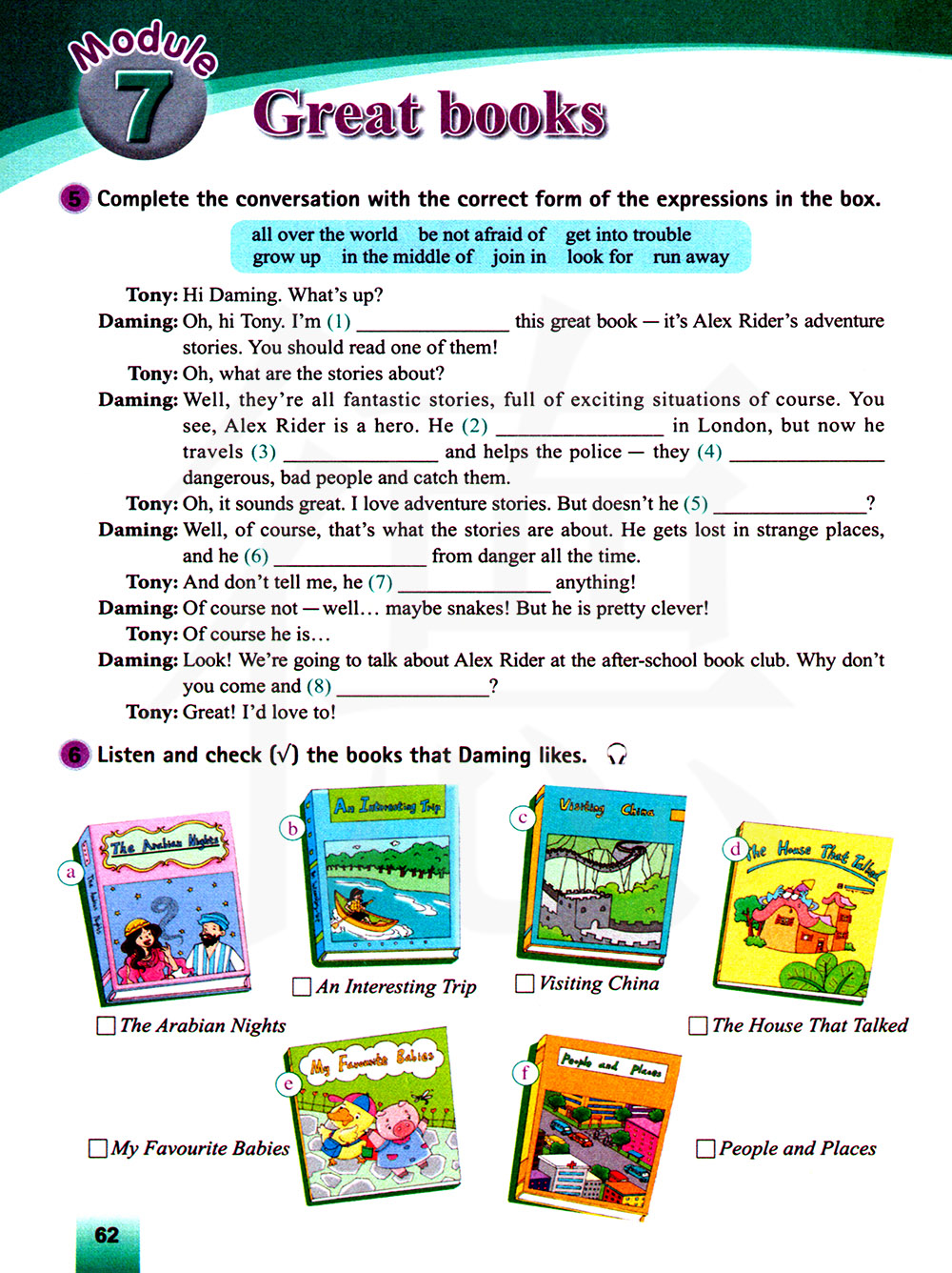 用方框里单词和词组的正确形式完成对话。c