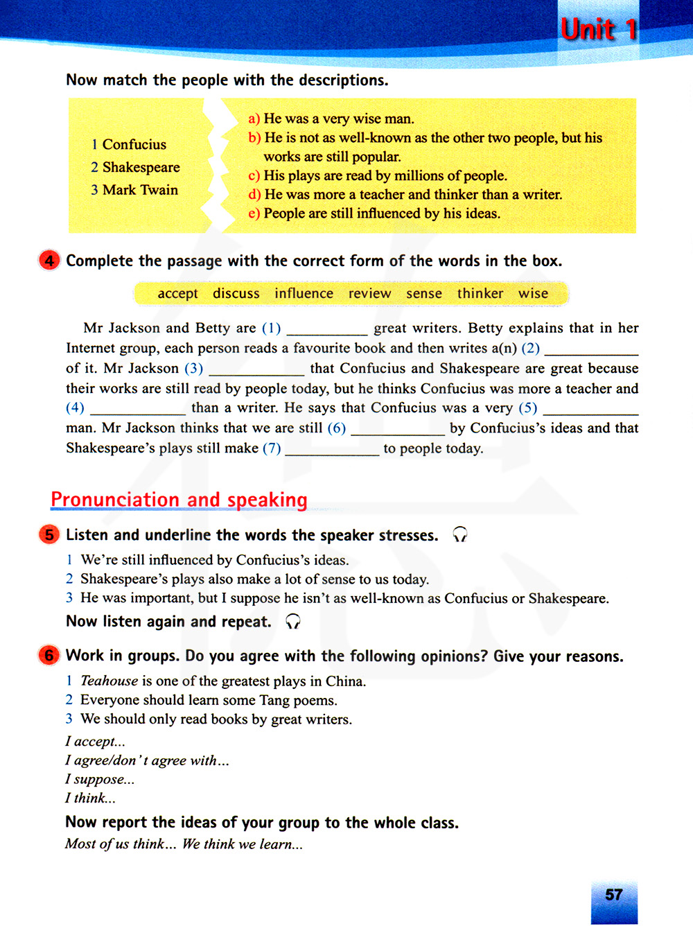 我们仍然被孔子的思想影响着。莎士比亚的戏剧现在对于我们来说也任然很有意义。