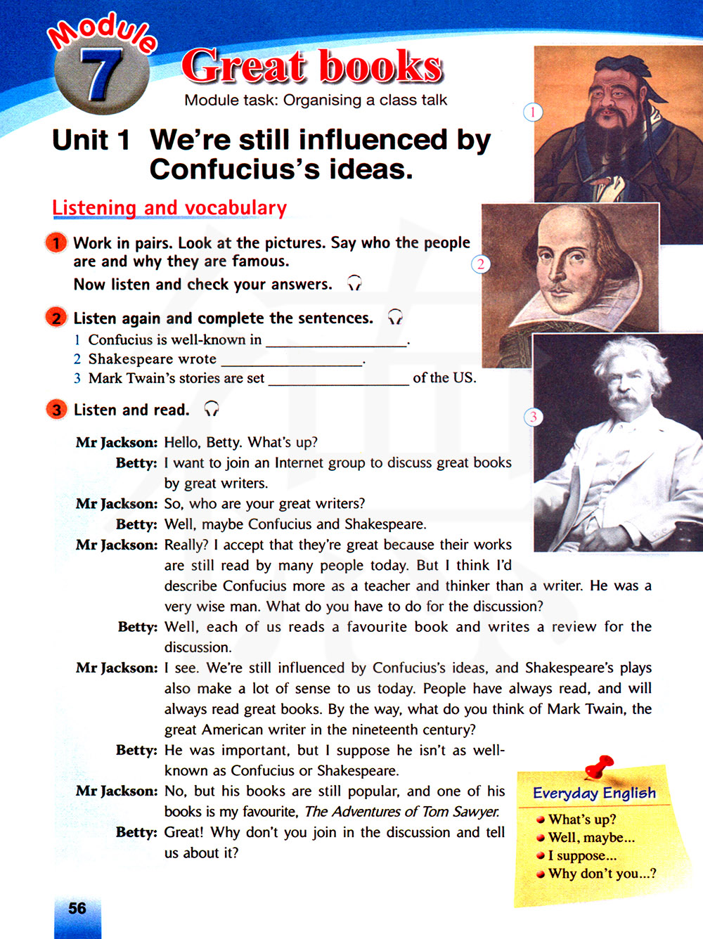 我明白了。我们仍然被孔子的思想影响,莎士比亚的戏剧现在对于我们来说也仍然很有意义。人们总是会读书,会读好书。顺便问一下,你对马克.吐温,19世界的美国作家有什么看法?