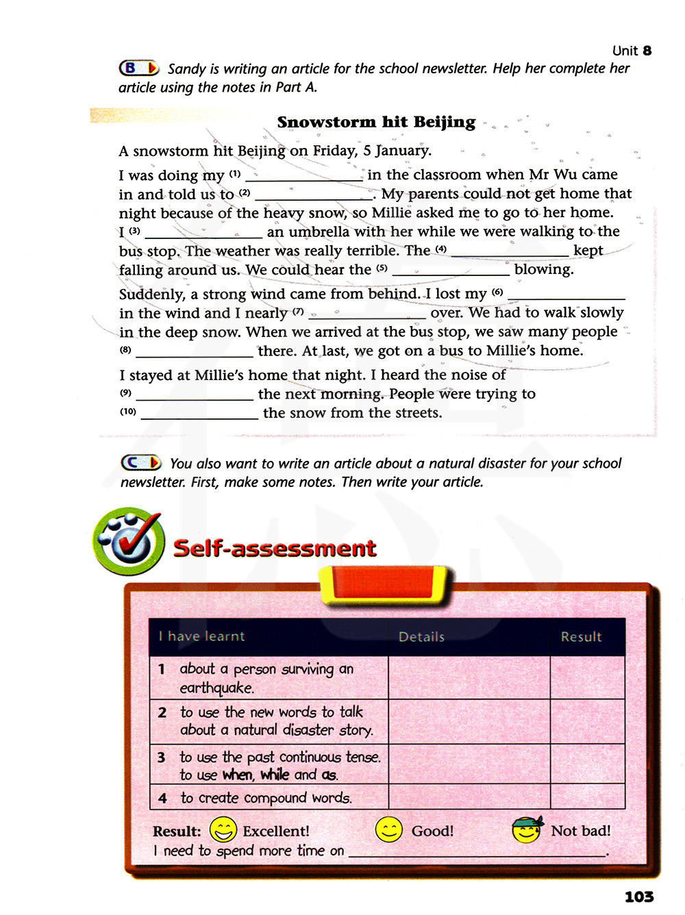 你还想为学校通讯写一篇关于自然灾害的文章。首先,做些笔记。然后再写文章。