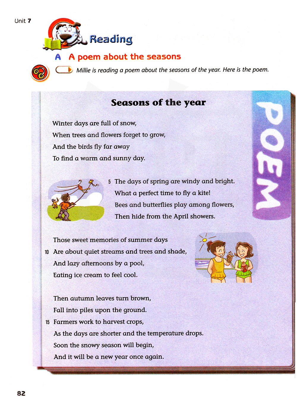 米莉正在阅读一首一年季节的诗。这就是这首诗。