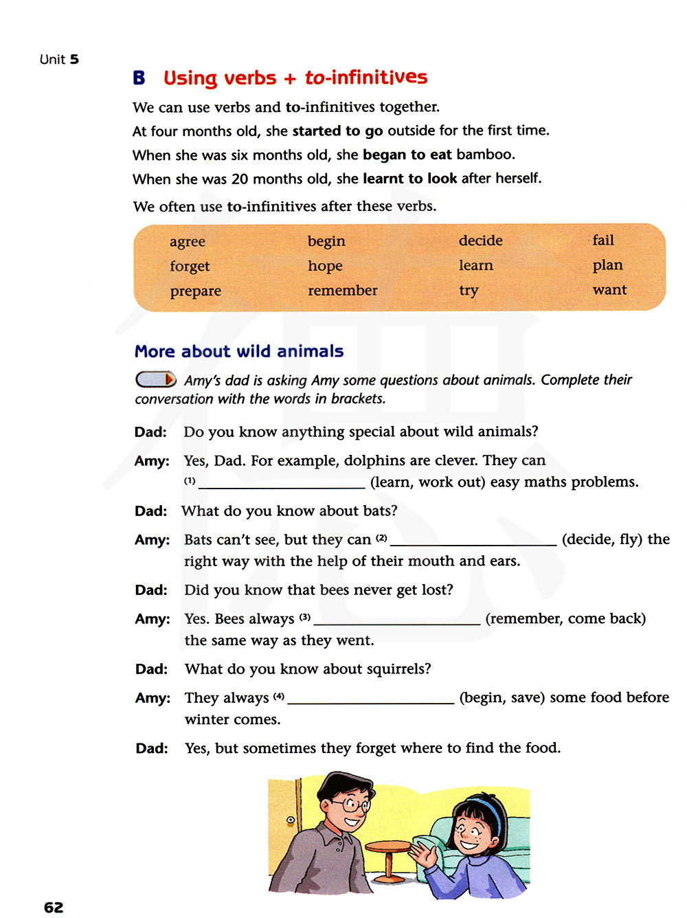 艾米的爸爸正在问艾米一些有关动物的问题。用括号中的单词完成他们的对话。