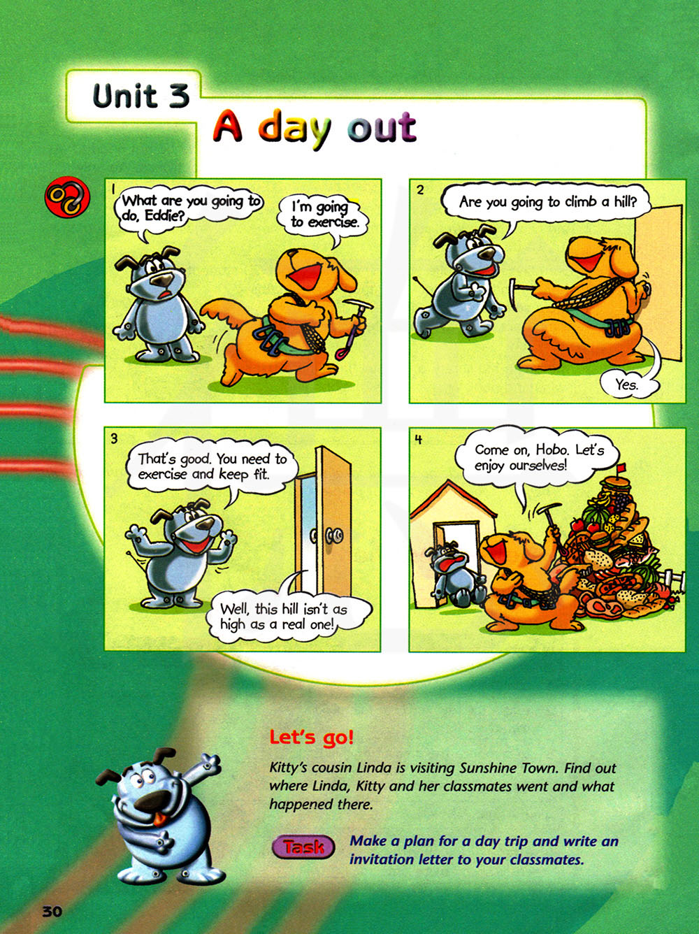 此句意为:今天下午我们就要登上埃菲尔铁塔的顶部!这是一个现在进行时态的句子,此处的are going to中的to是介词,用现在进行时表将来。在英语中,go(去),come(来),arrive(到达),leave(离开),start(开始)。return(返回)等表示“位置移动”的动词,它们的进行时态往往表示将来,含有意图、安排或打算的含义。这种现在进行时比较生动,给人一种期待感,它常常表示最近或较近的将来。如: