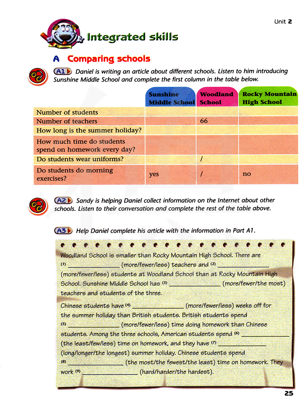 珊迪在帮助丹尼尔从互联网上收集其他学校的信息。听他们的对话,完成上文表格中剩余部分信息的填写。