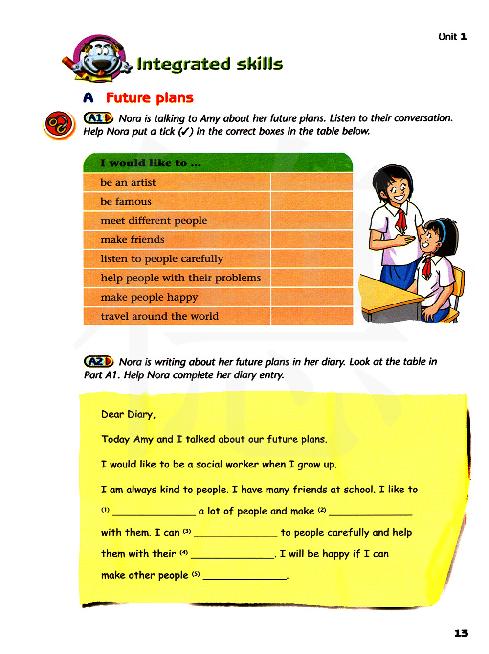 诺拉在她的日记中写下关于她未来的规划。看A1部分的图表。帮助诺拉完成她的日记。