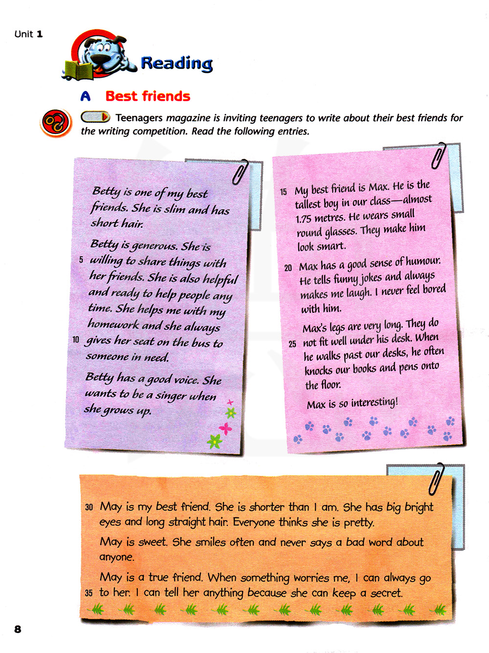 青少年杂志邀请青少年们在写作竞赛中写一下关于他们最好的朋友。读一读下面的参赛作品。