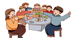 例句:Guess what? I'm going to dinner at Mrs. Combley's tonight.