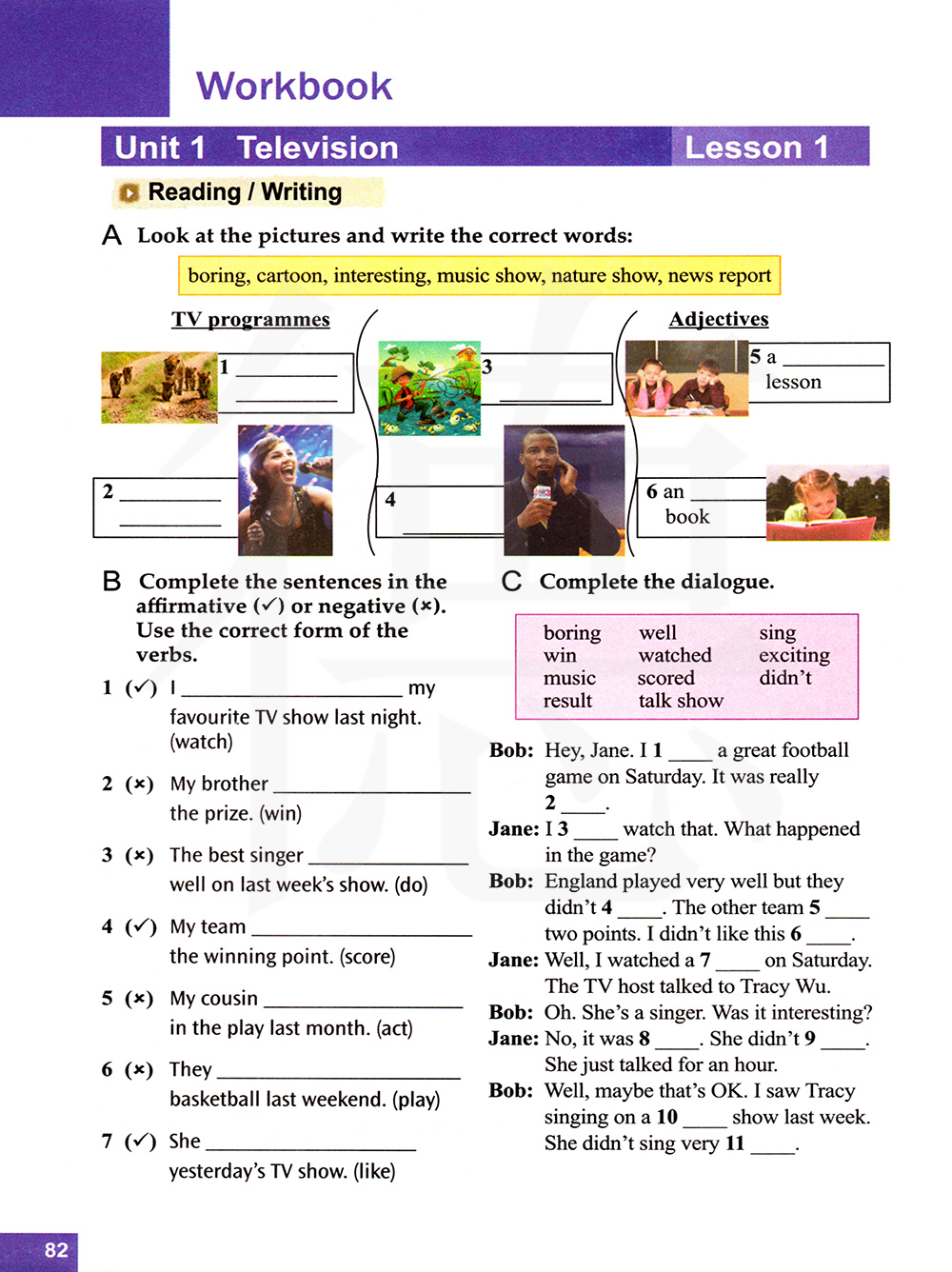无聊的 好 唱 赢 看 令人兴奋的 音乐 得分 did的否定形式 结果 脱口秀