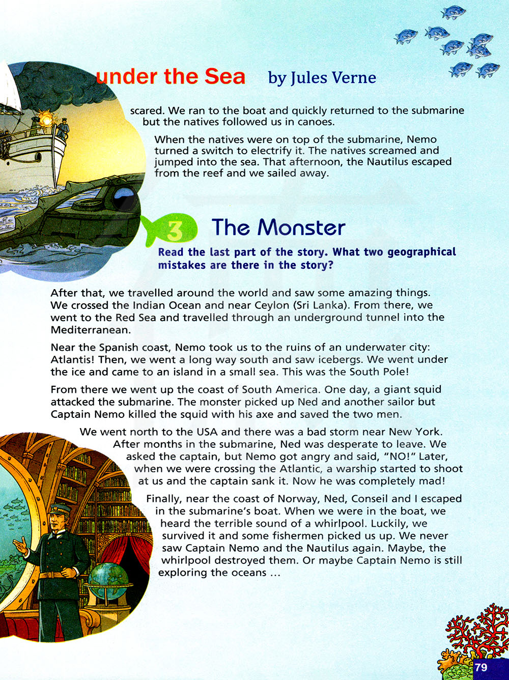 怪物 读该故事的最后一部分,标出鹦鹉螺号航行的路线,故事中犯了哪两个地理错误?